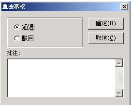 3. 審核:選擇一新單,然后點擊工具欄中的 或者菜單[業(yè)務\審核],系統(tǒng)彈出審核對話框。選擇‘通過’或‘駁回’,也可輸入批注,之后,按確定。