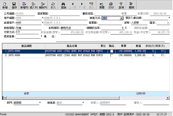 必錄項目。和客戶進行結算的貨幣。系統以客戶資料中的結算貨幣作為默認值,用戶可以維護。 |